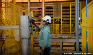 Operação da Fábrica de Blocos na Mina do Pico, produzidos a partir de rejeitos da mineração, no Complexo Vargem Grande da Vale, em Minas Gerais.